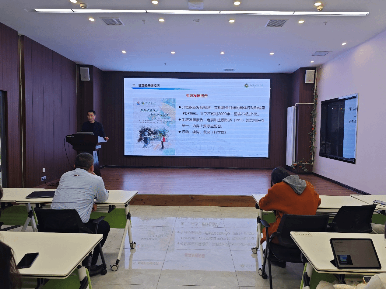 张琨老师从赛事解读、两届赛事异同和备赛关键技巧三个方面进行讲解,帮助同学们深入理解职业规划大赛的内涵与价值。张老师通过生动的案例与实战经验,阐释了如何根据自身特点与兴趣来选择合适的职业路径,如何通过比赛的历练提升自我认知、规划能力与表达能力。内容深入浅出,现场气氛活跃,学生们热烈讨论,纷纷表示受益匪浅,特别是在如何科学规划未来职业发展方面,收获了许多实际操作性强的建议。