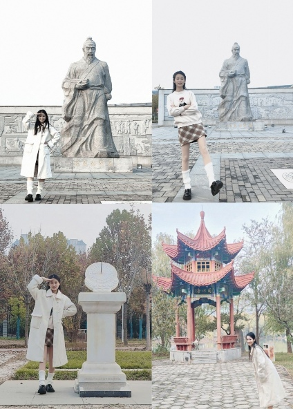 活动中,同学们以个人或组队形式前往指定的打卡点,创意搭配动作进行拍摄,捕捉校园的美好瞬间。参赛作品充分展现了校园的多样魅力。天一湖畔的安宁静谧吸引了部分同学在湖边散步,用心体会自然之美;药植园则成为热爱植物学的同学们探索中草药奥秘的好去处;在仲景像前,参赛者们怀揣对医圣的敬仰,透过镜头致敬中医文化的博大精深。2023级中药学本科班的祝海馨和尹翎屿同学,凭借独特的视角和创意的拍摄手法,重新发现了校园中那些常被忽视的细节之美,荣获本次活动一等奖。