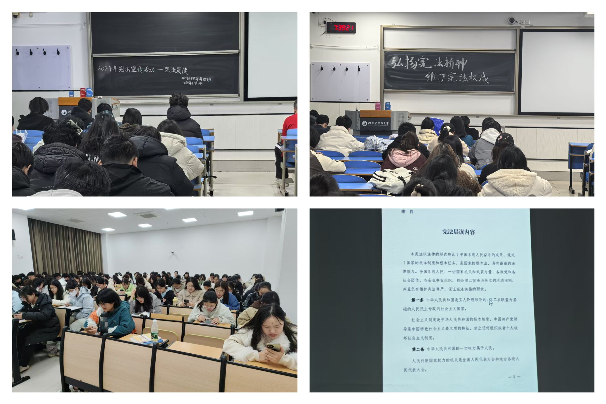 创新宣传方式,丰富教育形式。在全面推进依法治国、加强宪法宣传教育的大背景下,书院积极响应国家号召,于近期组织了一系列宪法教育活动,其中,“宪法晨读”活动旨在通过清晨的宪法朗读,让宪法精神深入人心,培养师生的宪法意识与法治思维,为构建和谐、法治的校园环境贡献力量。通过宪法朗读,师生对宪法的基本内容、基本原则及宪法精神有了更深入的了解。书院充分利用融媒体平台,如视频号、微信公众号等,开展线上宪法教育活动,拓宽教育渠道,提高教育效果。通过持续的努力,宪法精神进一步深入人心,成为指导师生行动的准则,为构建法治中国贡献力量。