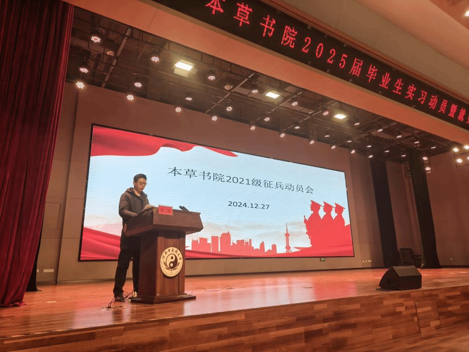 于2024年12月27日在俊学楼B101举行毕业生征兵动员会,2021级全体学生参加本次动员会。本次会议由双创孵化中心主任武永勇主持。