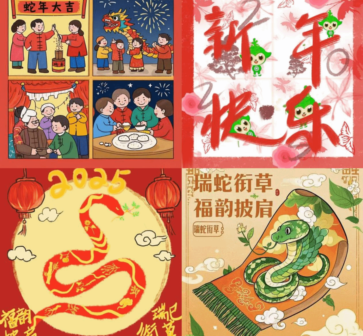 各社团积极响应,以新颖独特的活动形式,将春节的喜庆氛围与同学们对中医药文化的深厚情感完美融合。远志医药文学社组织同学们挥毫泼墨书写春节对联,将中医药智慧融入字里行间;中药艺术品协会匠心独运,带领参与者们设计出蕴含蛇年元素的主题围巾,巧妙地将蛇这一自然界生灵与传统中医药文化相结合,促进了传统文化的创新性传承;大学生书画协会的创意“福”字创作活动,将蛇这一生物融入传统文化中,展现了中医药文化与书法艺术的和谐共生。此外,远志讲解团引领参与者们生动讲解蛇类药材的医用价值,不仅增长了同学们的知识,也进一步弘扬了中医药文化的博大精深;摄影协会带领同学们用镜头捕捉新年美景,职业生涯发展协会则引导同学们规划未来,Sunny Talk英语口语社带领同学们用英语描述对春节的独特见解;七色光志愿者团队精心策划春节贺卡制作活动,传递着浓浓的节日温情;中医药养生协会则发起每日养生打卡活动,引导同学们关注健康,践行中医药养生理念;开心剧团组织同学们线上共赏春晚,通过屏幕共享欢乐,加深友谊。