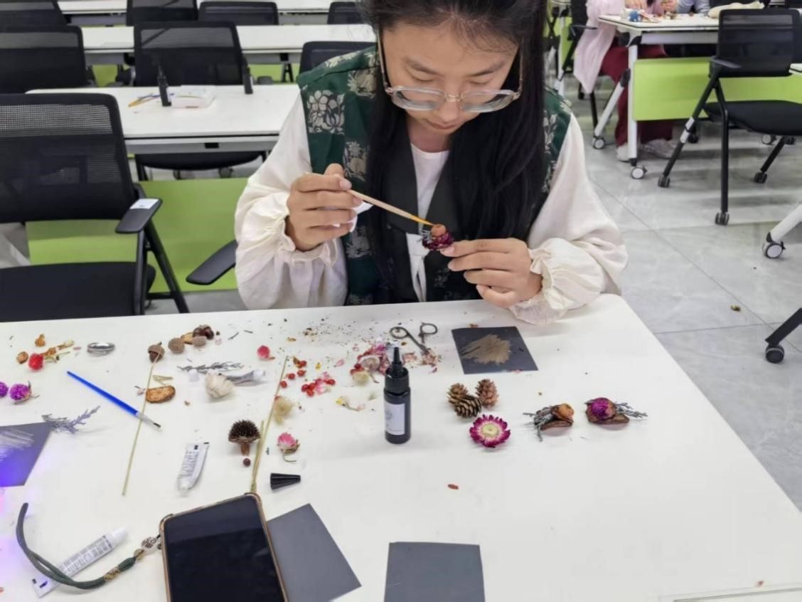 朋辈导师于2025年5月25日在远志学堂举办“草饰共韵,药香满庭”中药材饰品制作活动。