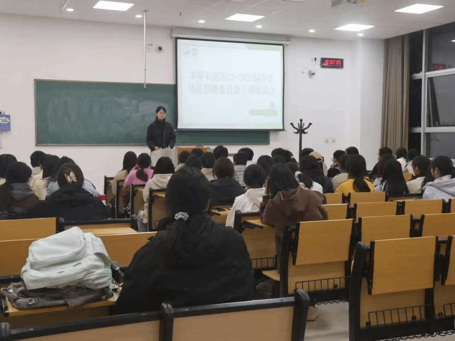 本网讯(文/卢欣 图/刘更新 张志文)为进一步提升学生社区管理委员会各部门干事的综合素质与业务能力,强化组织凝聚力,推动书院学生社区工作高效、规范、有序开展,于2025年10月20日在教学楼A105召开2025-2026届干事培训会。会议由社管会主任樊秋涵主持,社管会全体成员参加。