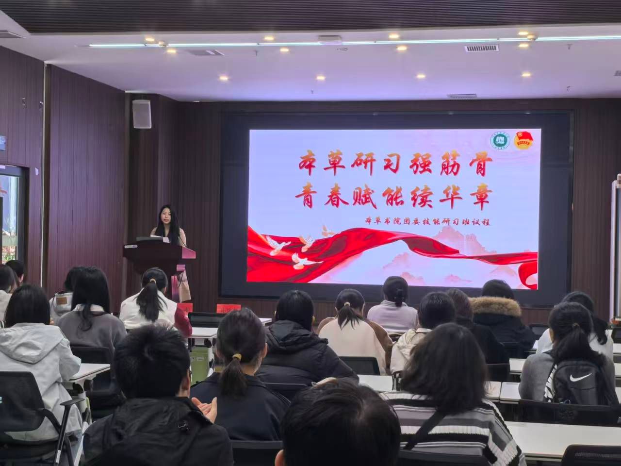 研习强筋骨,青春赋能续华章”为主题的团委技能研习班。分团委学生兼职党务副书记张馨悦、团务副书记李佳音及各部门副部、干事参加,会议由党务综合部副部王思涵主持。