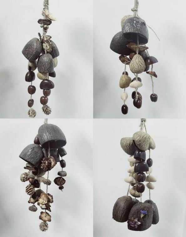 活动伊始,主持人通过生动的PPT讲解、沉浸式视频演示与实物近距离展示,系统介绍了中药果壳风铃的创作渊源、制作技巧、充分调动起大家的参与兴趣与创作期待。随后,工作人员为每组参与者发放材料包,内含核桃壳、松果壳等多种富含中医药特色的自然材料,并现场细致演示制作方法。创作过程中,同学们在朋辈导师指导下各展巧思,有的以核桃壳配深棕麻绳,系上银杏叶还原秋日意境;有的以松果壳搭橙色彩绳,打造“阳光光斑”效果;还有小组反复调试绳长与间距,力求风铃摇曳时能发出层次分明、清脆悦耳的声响,仿佛将自然的私语定格其中。同学们时而凝神专注地穿壳、打结,时而与同伴低声交流灵感。其中,王丹丹,李义甫,陈佳一,高原组成的小组凭借出色作品斩获一等奖。此外,活动还评选出二等奖2组、三等奖3组。