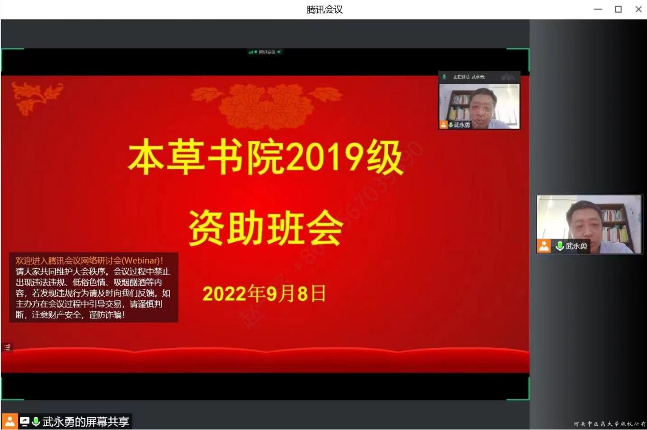 各年级于9月8日在线上举行学生资助工作主题班会,各年级辅导员、全体学生参加班会。