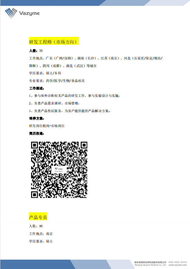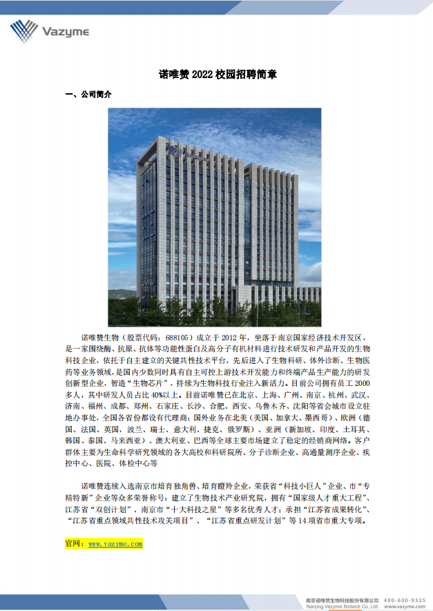 诺唯赞2022春季校园招聘简章
