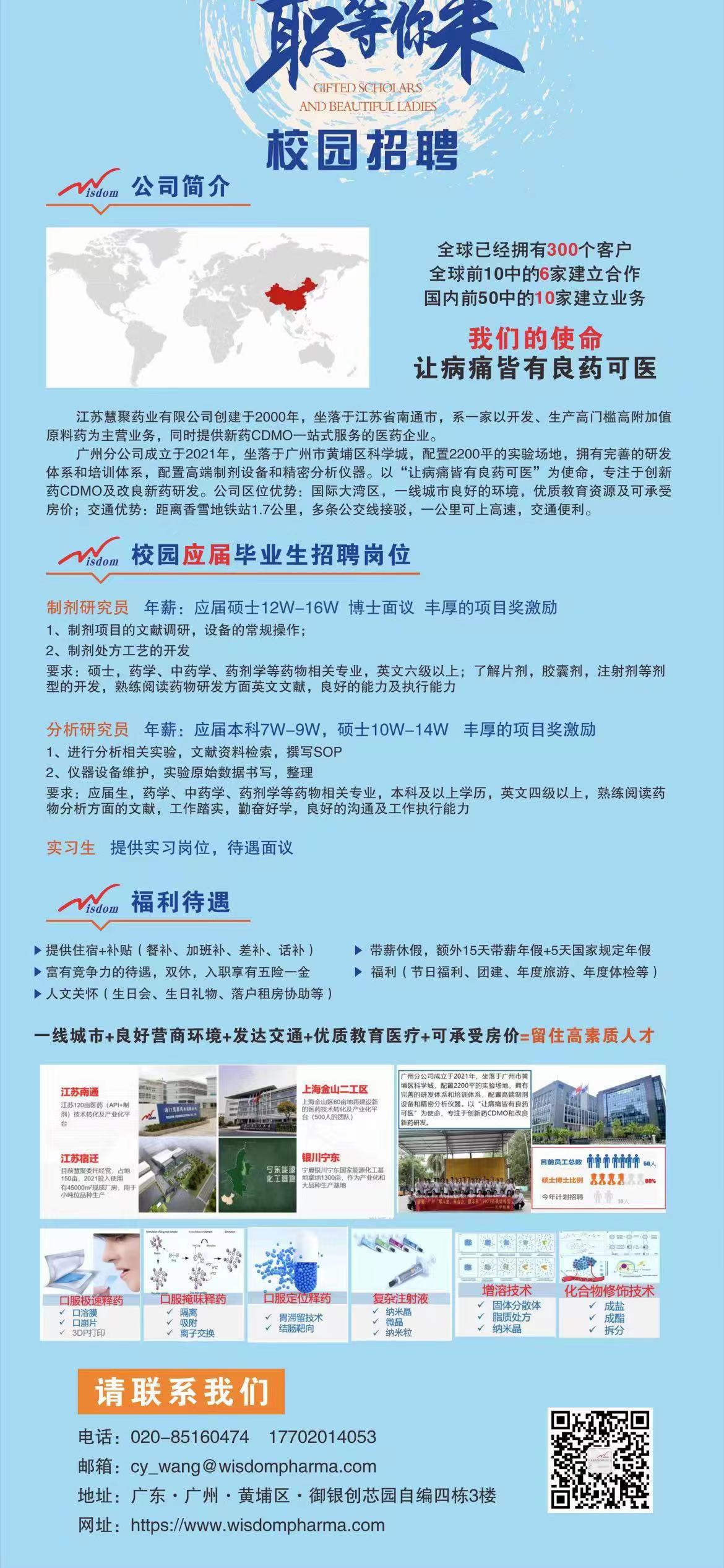 【招聘】江苏慧聚药业有限公司广州分公司