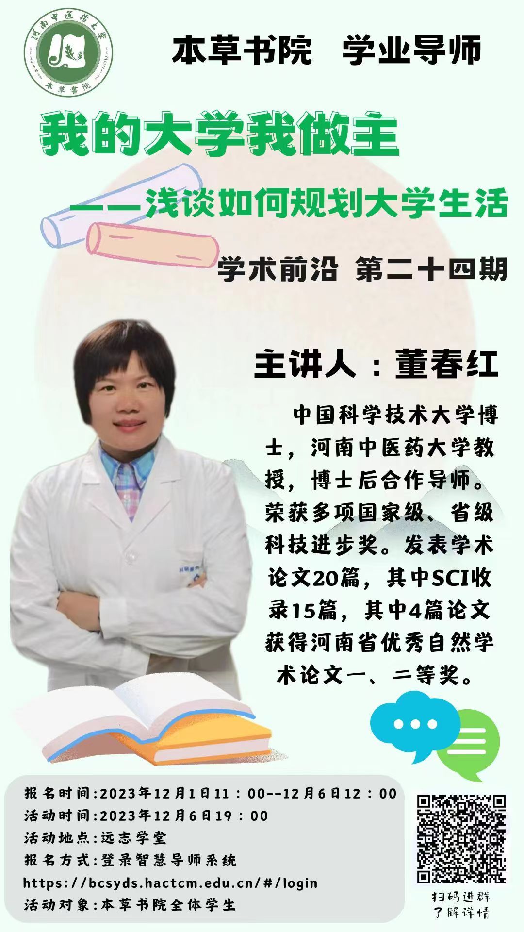 本期学术前沿以“我的大学我做主——浅谈如何规划大学生活”为主题,旨在帮助同学们有效的规划大学生活,为同学们提供一些实用的方法和技巧,以提升大学生的学习效率和生活品质,培养自主学习和自我管理的能力,树立终生学习的理念,为今后的人生做好职业规划。