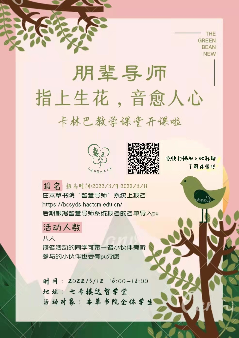 为了提升同学们的大学生活幸福感,丰富同学们的乐感能力,掌握认识简谱和弹奏卡林巴的基本技巧。在弹奏乐曲的同时,释放自己的压力,发挥自己的想象力,提升自我的幸福感与满足感。
