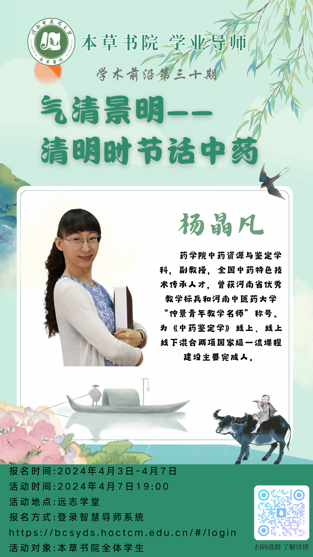 本次活动旨在借清明节的时令花木、养生、美食以及美容等方面,帮助学生们更好地理解其中所蕴含的博大精深的中医药文化,激发同学们对于中医药文化的好奇心和探究精神,培养健康养生的生活方式,体会传统中药文化习俗的魅力,为未来中医药研究或健康领域的深入探索奠定坚实的基础。