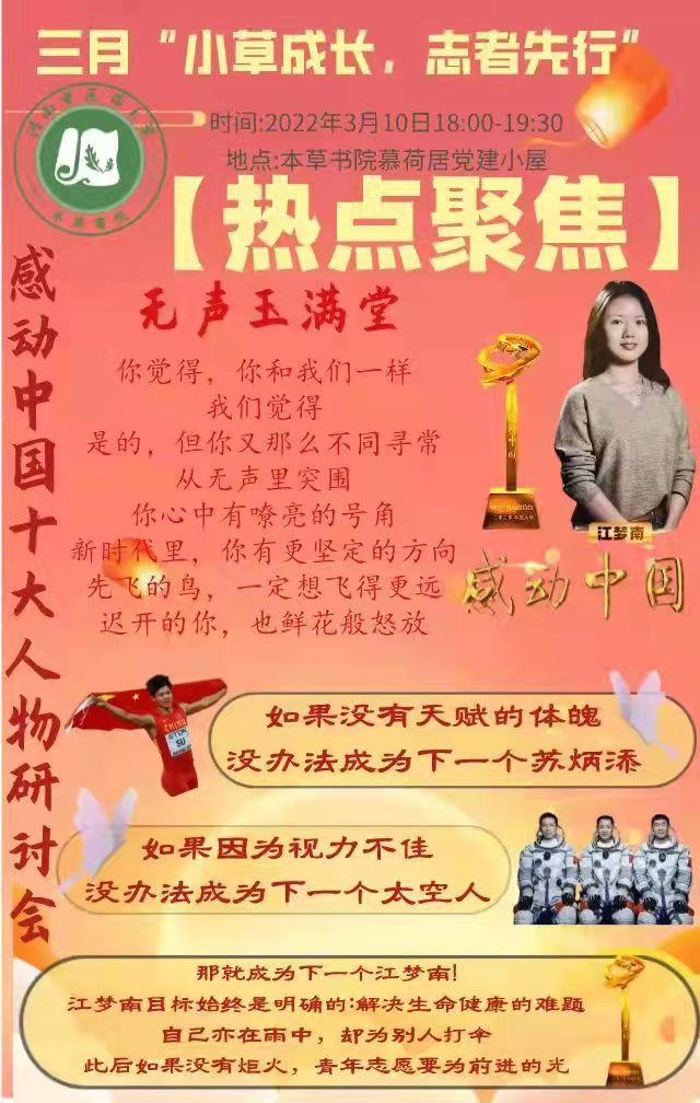 团委特打造【热点聚焦栏目】关注社会热点,以学习感动中国十大人物事迹精神为主题,开展本期交流会。