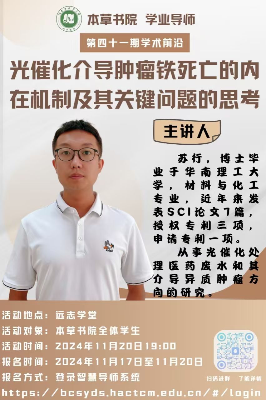 朋辈导师特举办“光催化介导肿瘤铁死亡的内在机制及其关键问题的思考”讲座活动。