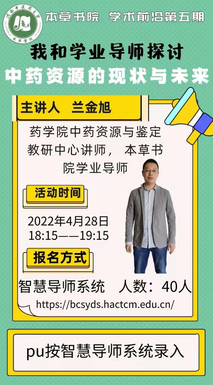 为使同学们更深入了解各个专业的特点和发展前景,解决学业规划上的难题。同时,提高自身专业知识,加强学术交流,开拓学术视野,我们邀请书院学业导师来探讨中药资源的现状与未来。