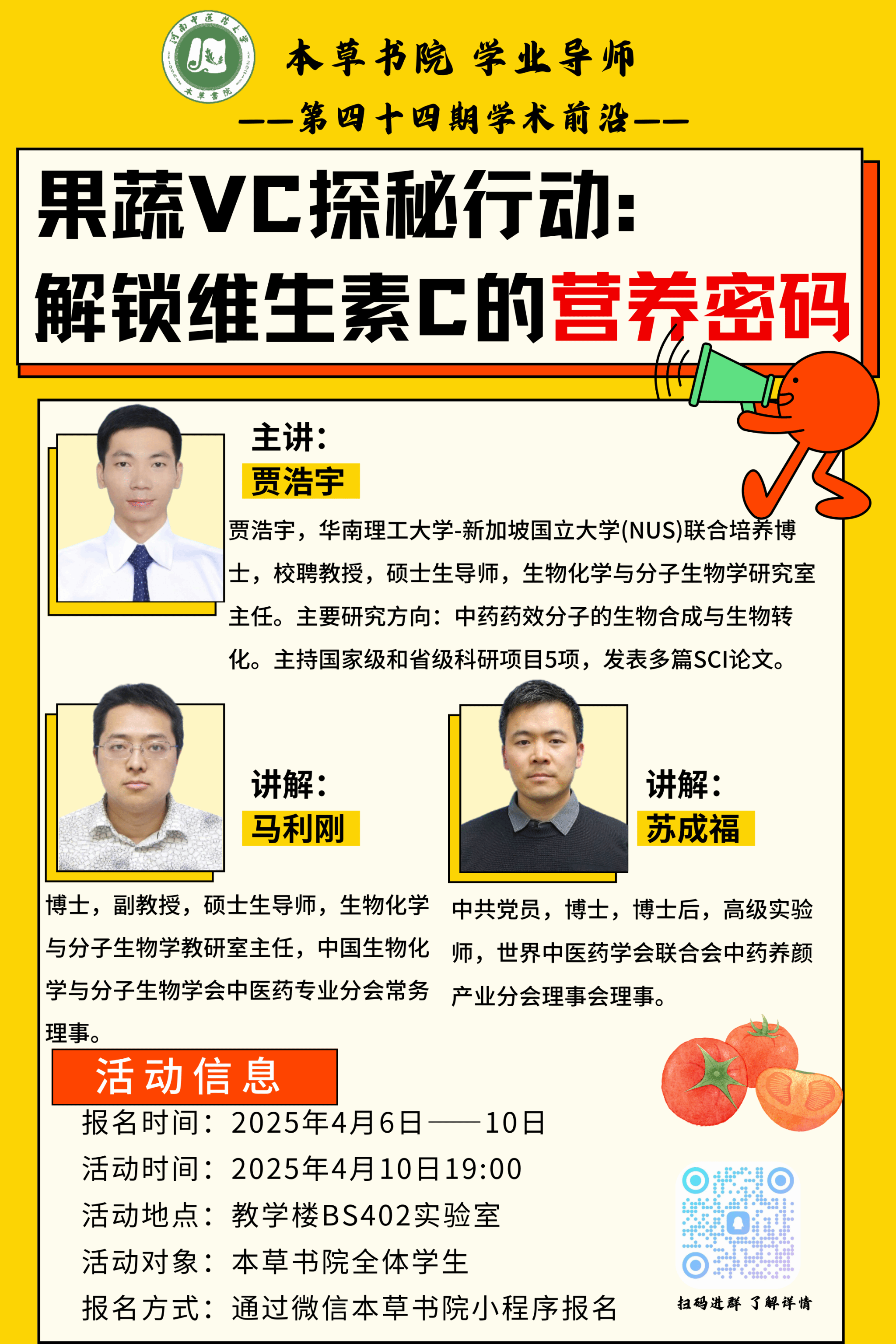 在日常生活中,人们对于果蔬营养的认知不断加深,维生素C作为重要的营养元素备受关注。但很多同学并不清楚不同果蔬中维生素C的含量差异,以及如何科学保存以最大程度保留其营养。为了满足同学们对营养知识的探索需求,激发大家对生物工程技术在食品领域应用的兴趣,特举办本次“果蔬VC探秘行动:解码维生素C的‘营养密码’”活动。