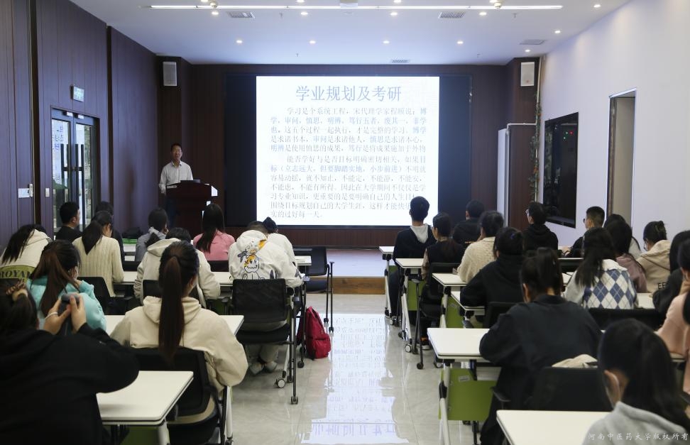 韩德恩老师以“什么是药剂学”展开,讲述了药剂产生的流程。韩老师向同学们介绍了药物制剂学专业以及药物从理论到产品设计,再到剂型类别的选择,无论哪种药物,其背后都是一套缜密严格的设计流程,也告诫同学们做任何事情都要遵循一定的流程,不可贪多图快。接着韩老师从生活中简单便利的泡泡液制作方法引入,极大吸引了同学们的关注,接着韩老师从药剂学的任务、分类以及药剂学的重难点向同学们介绍了药剂学的相关知识。在最后的提问环节,有同学提出了自己学业上的问题,韩老师都一一解答。最后,韩老师结合《论语》,以“学而时习之,不亦乐乎”等句子为例,希望同学们能爱其所学,享其所获。