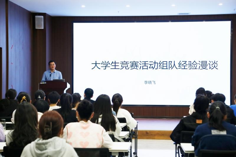 学业导师李晓飞老师结合自己带队参加2021年“互联网+”的经验做了《大学生竞赛活动组队经验漫谈》的讲座。