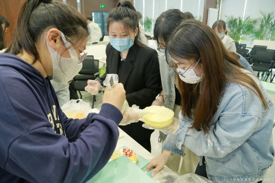 此次活动受到同学们的热捧,纷纷踊跃报名参加。活动伊始,社区管理委员会负责同学向大家介绍了活动流程,向参与者分发了蛋糕胚、奶油以及制作工具。活动中,同学们结合自己的审美创意亲手制作蛋糕,经过前期的准备、蛋糕胚的摆放、奶油的涂抹、水果的点缀、裱花装饰等环节,一个个精美的蛋糕作品呈现在大家眼前。此时,空气中到处弥漫着浓郁丝滑的香味和扑面而来的欢声笑语,一片其乐融融的景象。