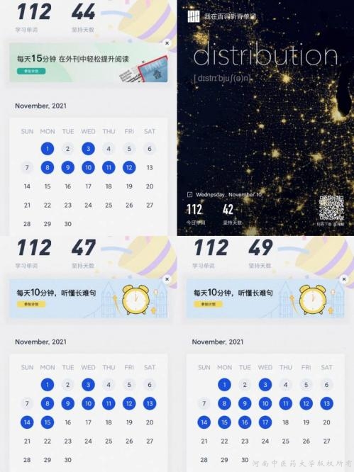 本网讯(文/李洋 张田丽 图/李洋)为全面培养同学们的英语学习能力,激发和增进英语学习的兴趣,养成良好的自律习惯,营造浓厚的学习氛围,17k小说 Sunny Talk英语口语社于2021年11月12日至19日开展线上“单词七天打卡”活动,共194名同学参加。