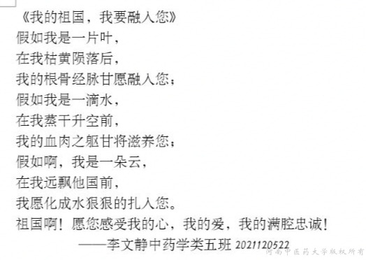 2021级中药学类五班李文静《我的祖国,我要融入您》