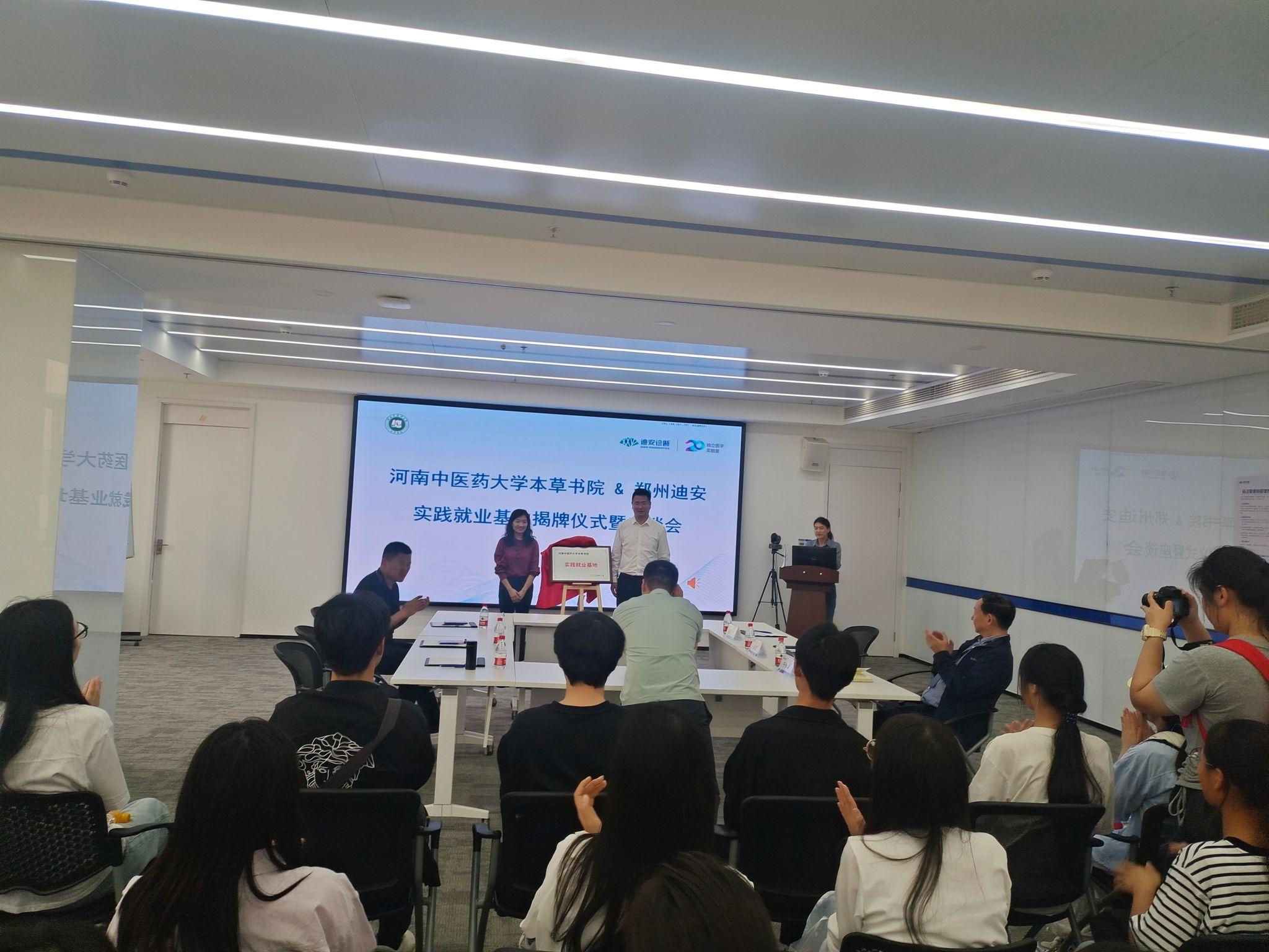 学生基本情况、书院实践就业情况,以及药学院实习相关工作。谢攀表示,迪安作为全国知名的上市企业,需要大量高素质人才的加入。希望能够进一步与学校、学院、书院探索更多合作模式,积极参与到中医药人才培养过程,吸引更多的优秀毕业生到企业工作。随后,双方签署合作协议并举行实践就业基地揭牌仪式。最后,郑州迪安各位负责人与同学们亲切互动,并针对同学们的问题给出了全面的解答,帮助同学们更加深入地了解企业的发展需要和人才需求。