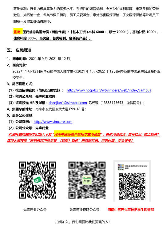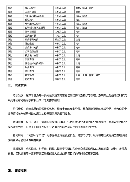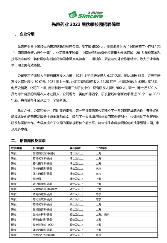 2022年度先声药业校园招聘简章