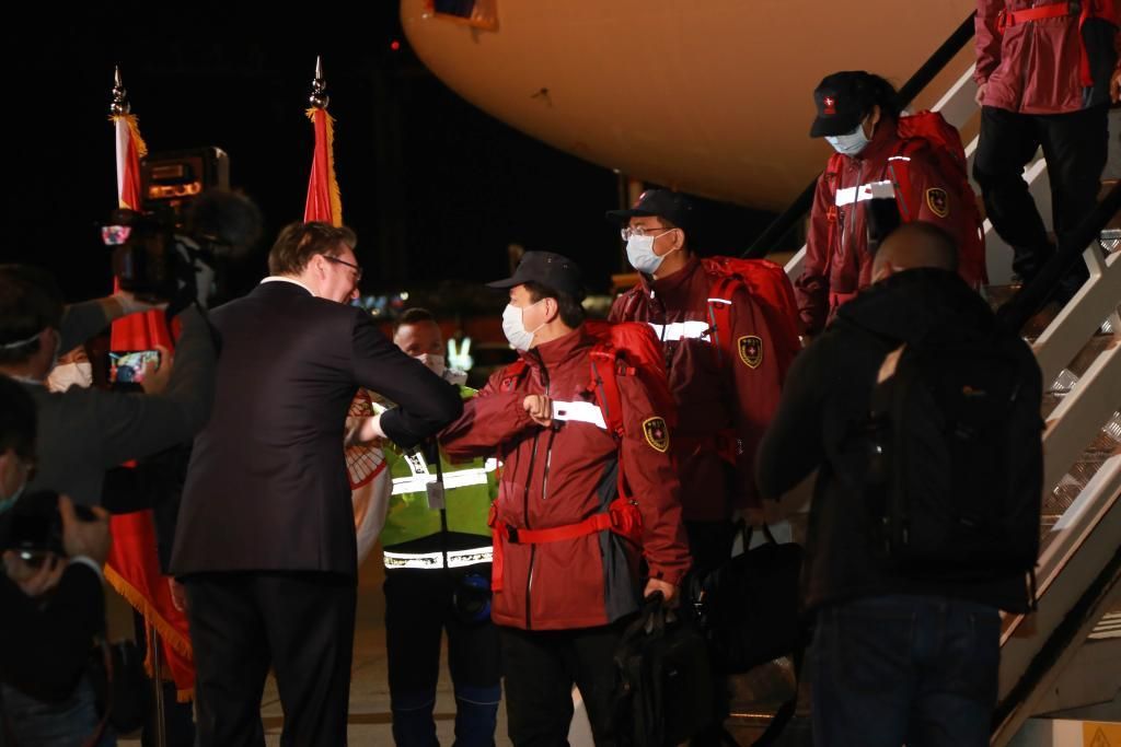 当中国专家组携救援物资第一时间赶到贝尔格莱德,武契奇亲往机场迎接,与中国专家组成员一一碰肘,更在五星红旗上献上深情一吻。