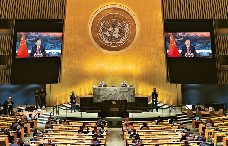 2021年9月21日,国家主席习近平在北京以视频方式出席第七十六届联合国大会一般性辩论并发表题为《坚定信心 共克时艰 共建更加美好的世界》的重要讲话。这是大会现场。 新华社记者 王迎 摄