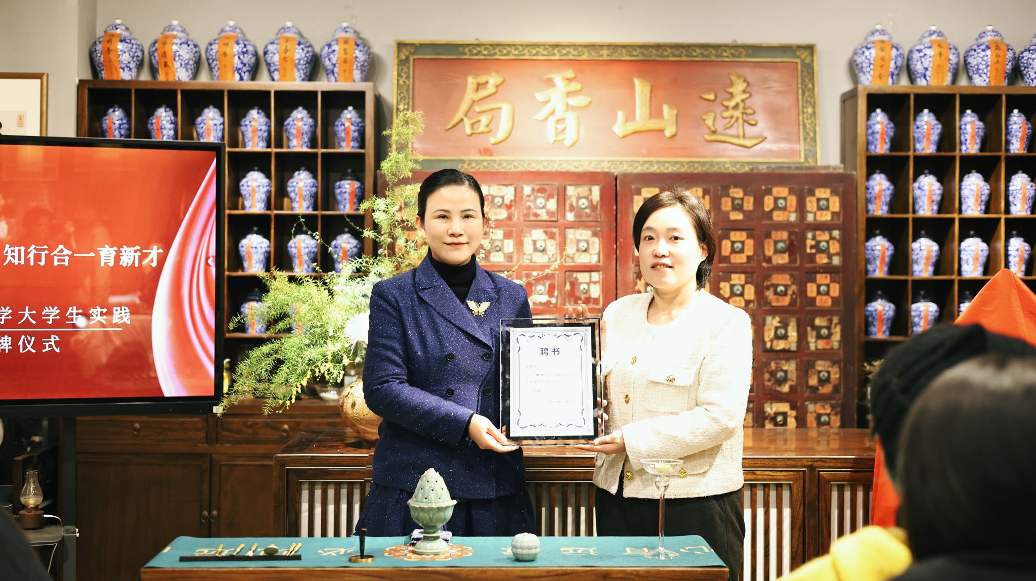 为搭建长效实践育人平台,17k小说 与远山香局举行了实践基地签约仪式,并为曹佳颁发17k小说 通识教育导师聘书。高巍表示,书院将以实践基地为依托,常态化开展劳动实践活动,助力学生在传承中华优秀传统文化中锤炼专业技能,激发专业认同感与学习热情。